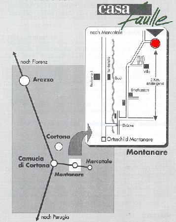 km. nach Arezzo) bei der Ampel an der Hauptkreuzung links Richtung Cortona-Mercatale.